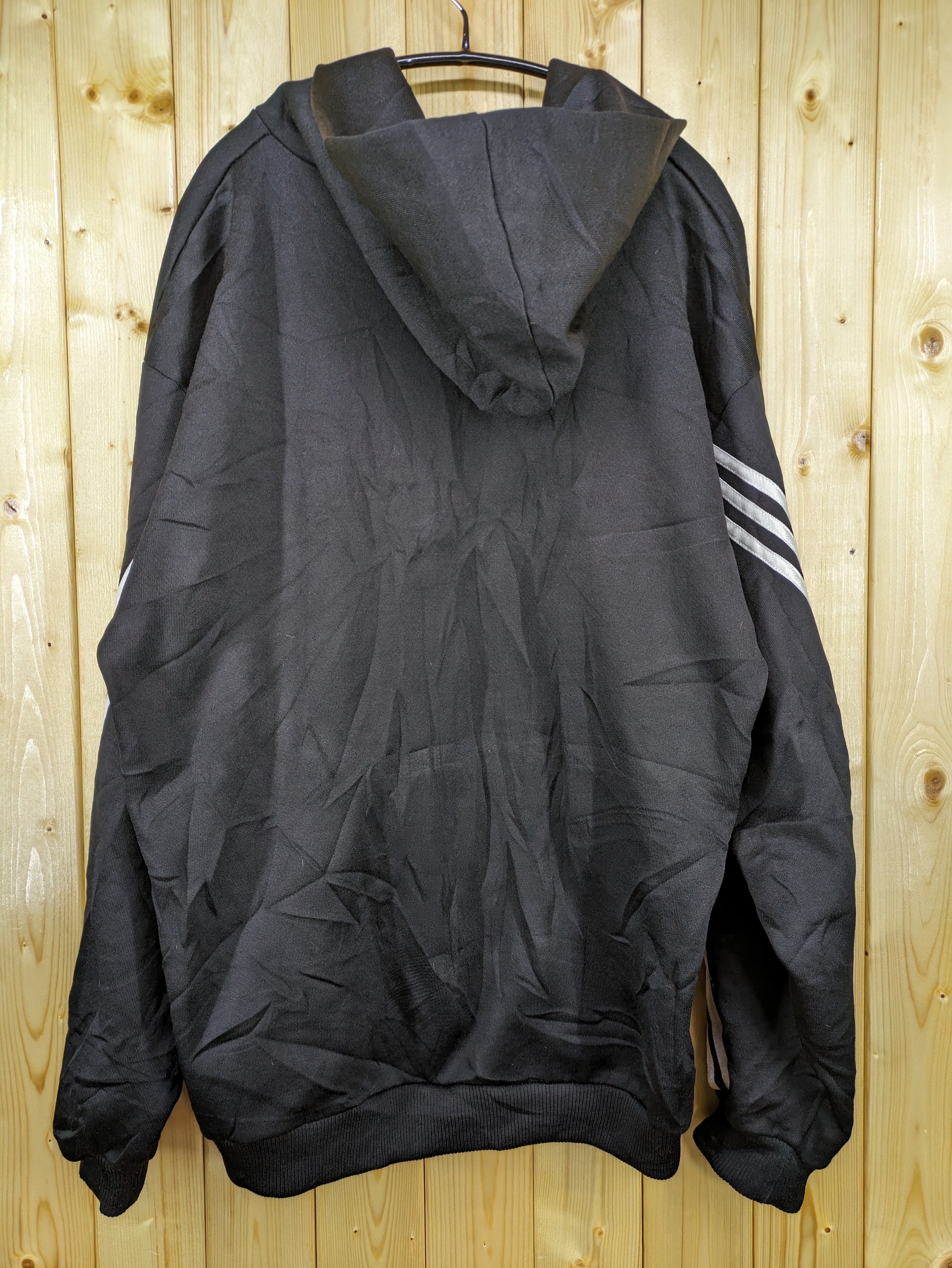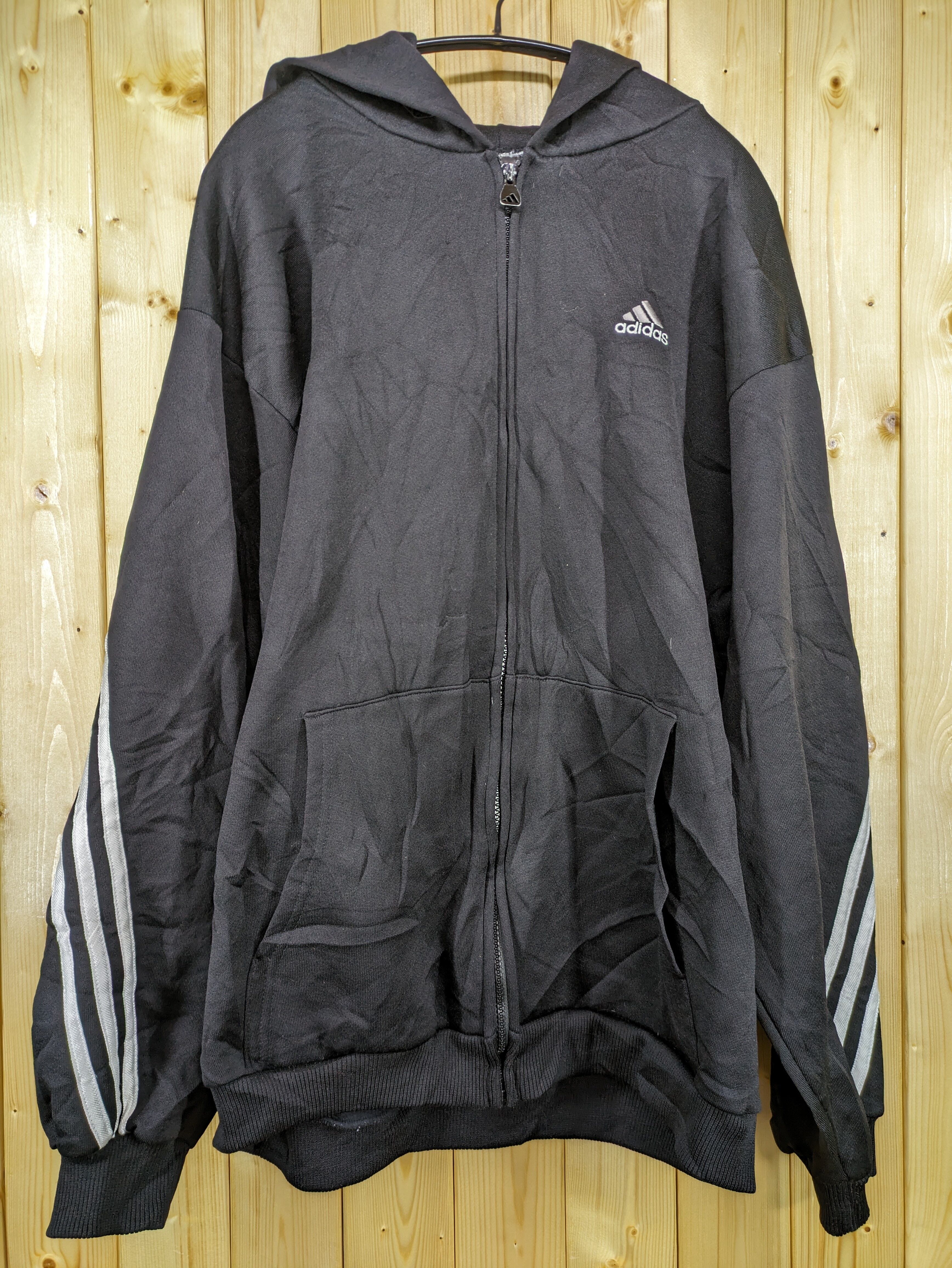 90s adidas ジップパーカー size:L USA製 パフォーマンスロゴ 3ライン フーディー Vintage 古着